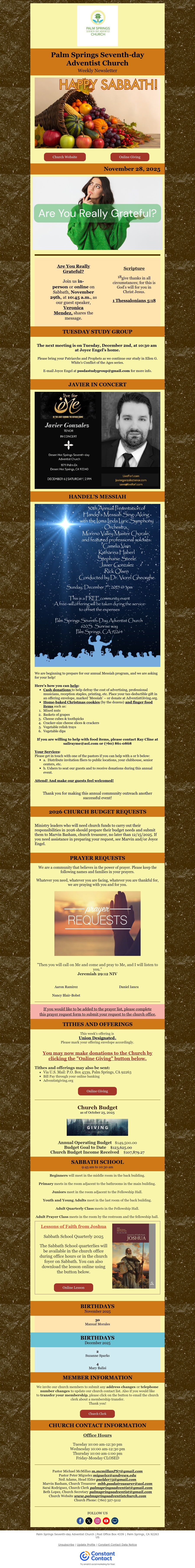Sign up for our church's weekly newsletter and have it sent straight to your email. You'll get all the latest news about upcoming events, church happenings, sermon details, offering destinations, and more!