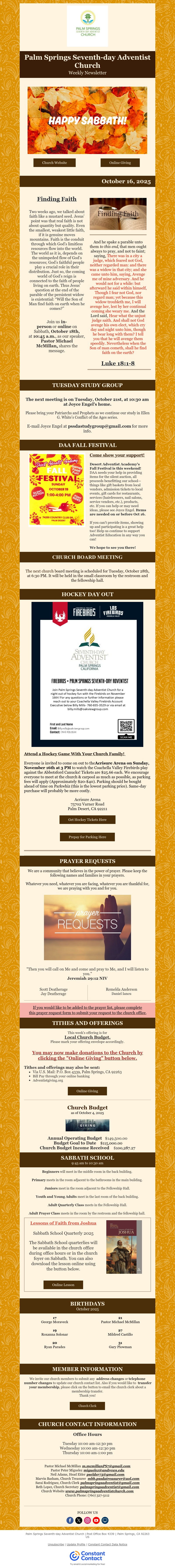 Sign up for our church's weekly newsletter and have it sent straight to your email. You'll get all the latest news about upcoming events, church happenings, sermon details, offering destinations, and more!