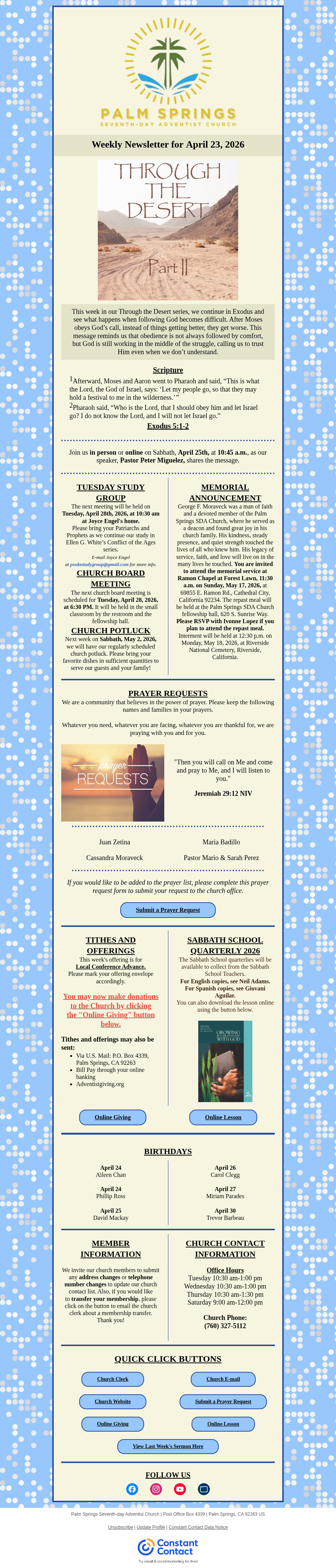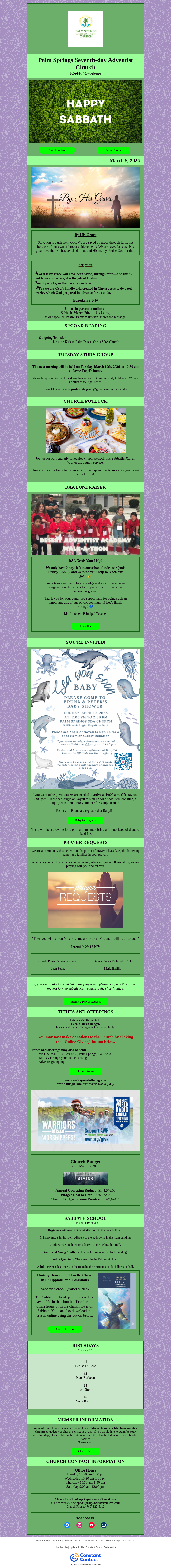 Sign up for our church's weekly newsletter and have it sent straight to your email. You'll get all the latest news about upcoming events, church happenings, sermon details, offering destinations, and more!
