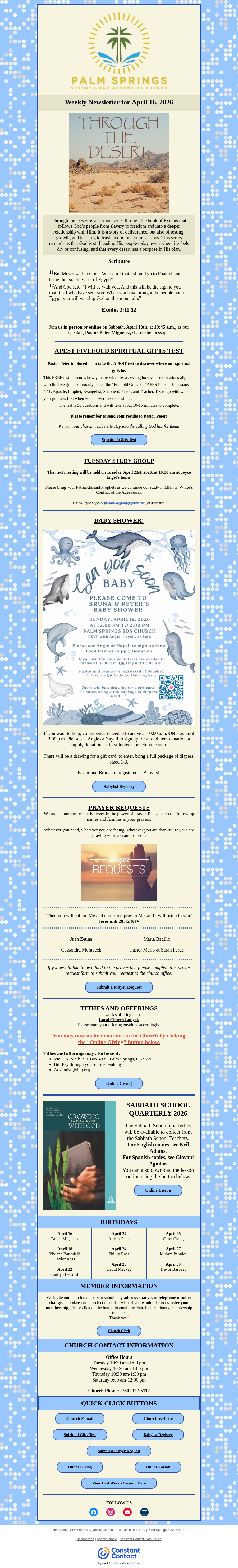Sign up for our church's weekly newsletter and have it sent straight to your email. You'll get all the latest news about upcoming events, church happenings, sermon details, offering destinations, and more!